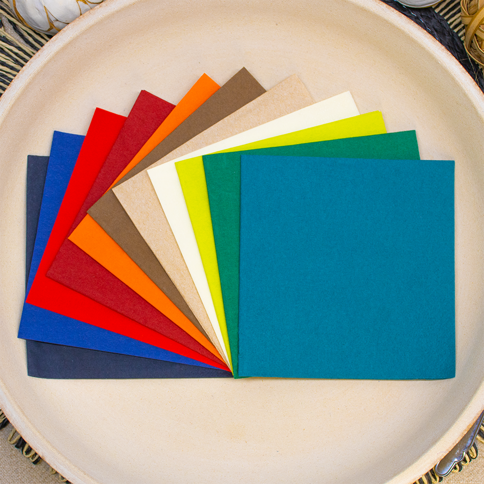 Zellstoff Servietten, farbig, 40×40 cm, 3-lagig, 1/4 oder 1/8 Falz, Flexodruck